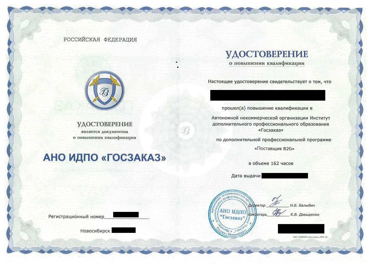 • Удостоверение о повышении квалификации установленного государством образца - при наличии среднего профессионального или высшего образования. Срок действия: 5 лет. Сертификат - при наличии среднего общего образования.
